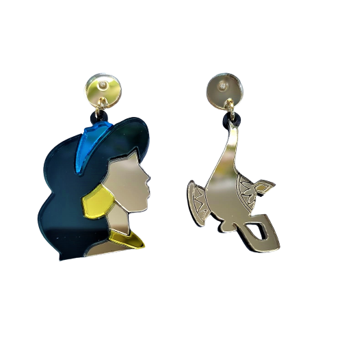 Pendientes metacrilato mini JASMÍN Y LÁPARA , es una mini versión de nuestro pendiente jasmin y lámpara mágica geniales tanto para las más pequeñas de la casa como para completar un look de diario.
