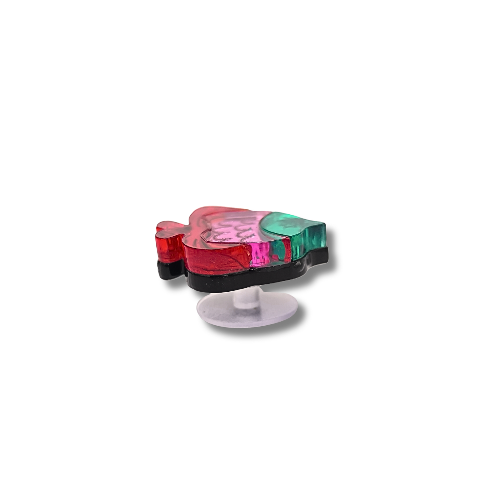 Gracias al uso de metacrilato premium, este pin es extremadamente ligero, permitiéndote personalizar tu calzado con total comodidad. Su acabado espejo aporta una luminosidad única que transforma tus zapatillas en una pieza de diseño. El enganche posterior asegura una sujeción firme para que este pez raya te acompañe en cada paso.