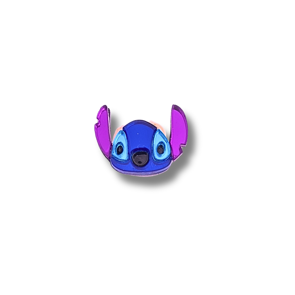 ¡Añade un toque de travesura galáctica a tu calzado con nuestro pin de Stitch! Este diseño artesanal rinde homenaje al alienígena más adorable de Disney, perfecto para quienes buscan un accesorio con mucha personalidad y un brillo espectacular. Fabricado en metacrilato espejo de alta calidad, destaca por su vibrante combinación de azul cobalto y orejas en morado eléctrico que capturan la luz con cada paso que das.